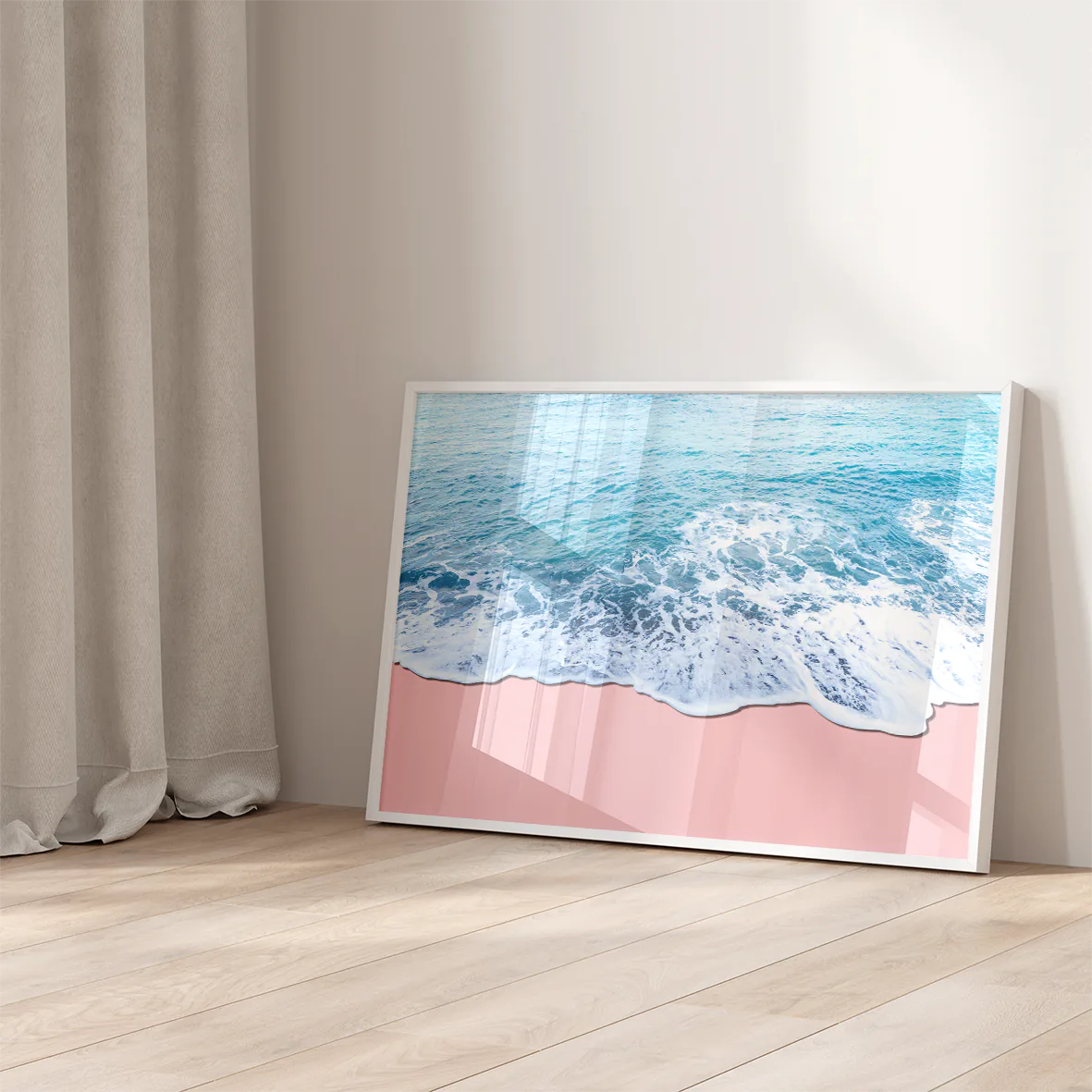 透き通るような青い波が、柔らかなピンクサンドに優しく寄せては返す瞬間を捉えたビーチアート。穏やかな色調のコントラストが、空間に海辺の静寂と上品な癒しをもたらします。日常を忘れさせてくれる美しい海の情景で、リビングや寝室、玄関を洗練されたリラックス空間へと変えてくれます。海への憧れと自然の美しさを感じられる特別な一枚です。