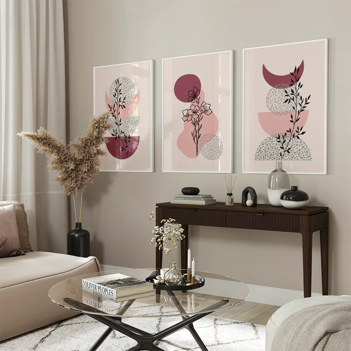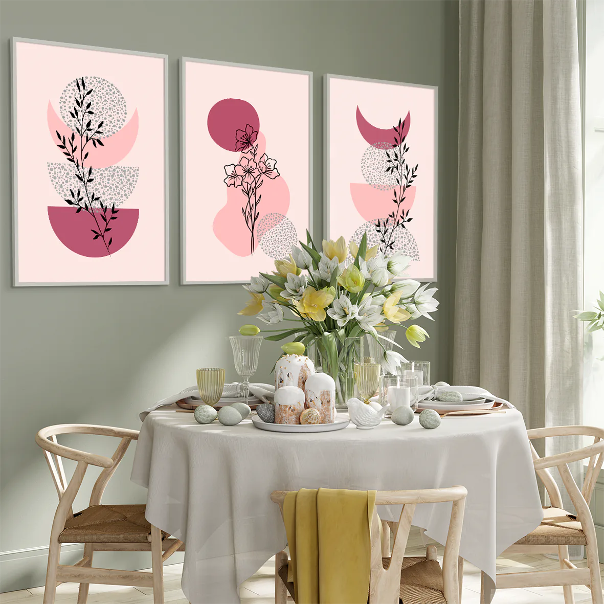 繊細な線画で表現されたピンクとグリーンの植物モチーフが美しいボタニカルアートポスター。ミニマルな構図と優しい色調が、空間に北欧風の洗練された自然美をもたらします。リビング・寝室・書斎など様々なシーンで、心安らぐボタニカルアクセントとして活躍。新築祝いや引越し祝いなどのギフトにも最適です。シンプルインテリアを好む方におすすめの、タイムレスな3枚セットです。