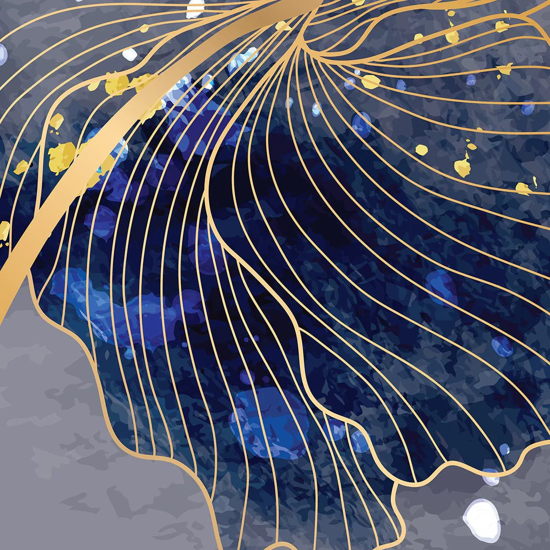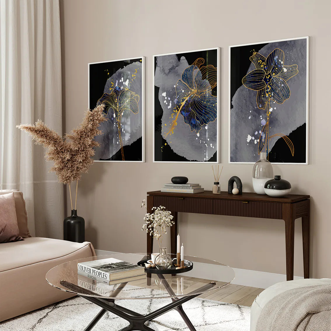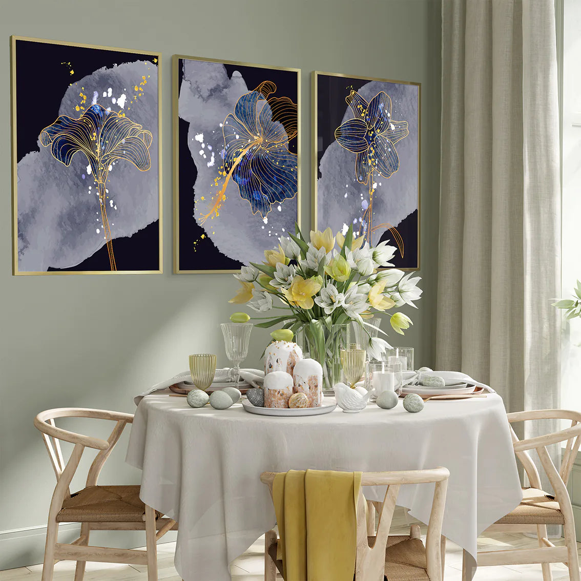 アートポスター 抽象 ネイビーフローラル ゴールドアクセント 北欧モダンインテリア 3枚セット