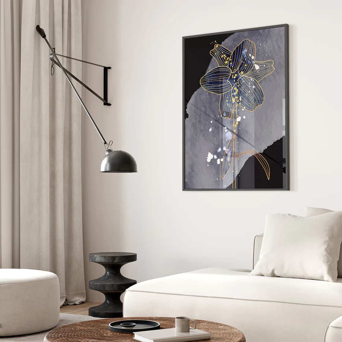 深いネイビーブルーの背景に浮かぶ、ゴールドの有機的な花模様が印象的な抽象フローラルアートポスター。繊細な筆致と上品な色彩バランスが、空間にラグジュアリーな北欧モダンの雰囲気をもたらします。リビング・寝室・書斎など様々なシーンで、エレガントなアクセントとして活躍。新築祝いや引越し祝いなどの特別なギフトにも最適です。高級感のあるインテリアを好む方におすすめの、タイムレスな3枚セットです。