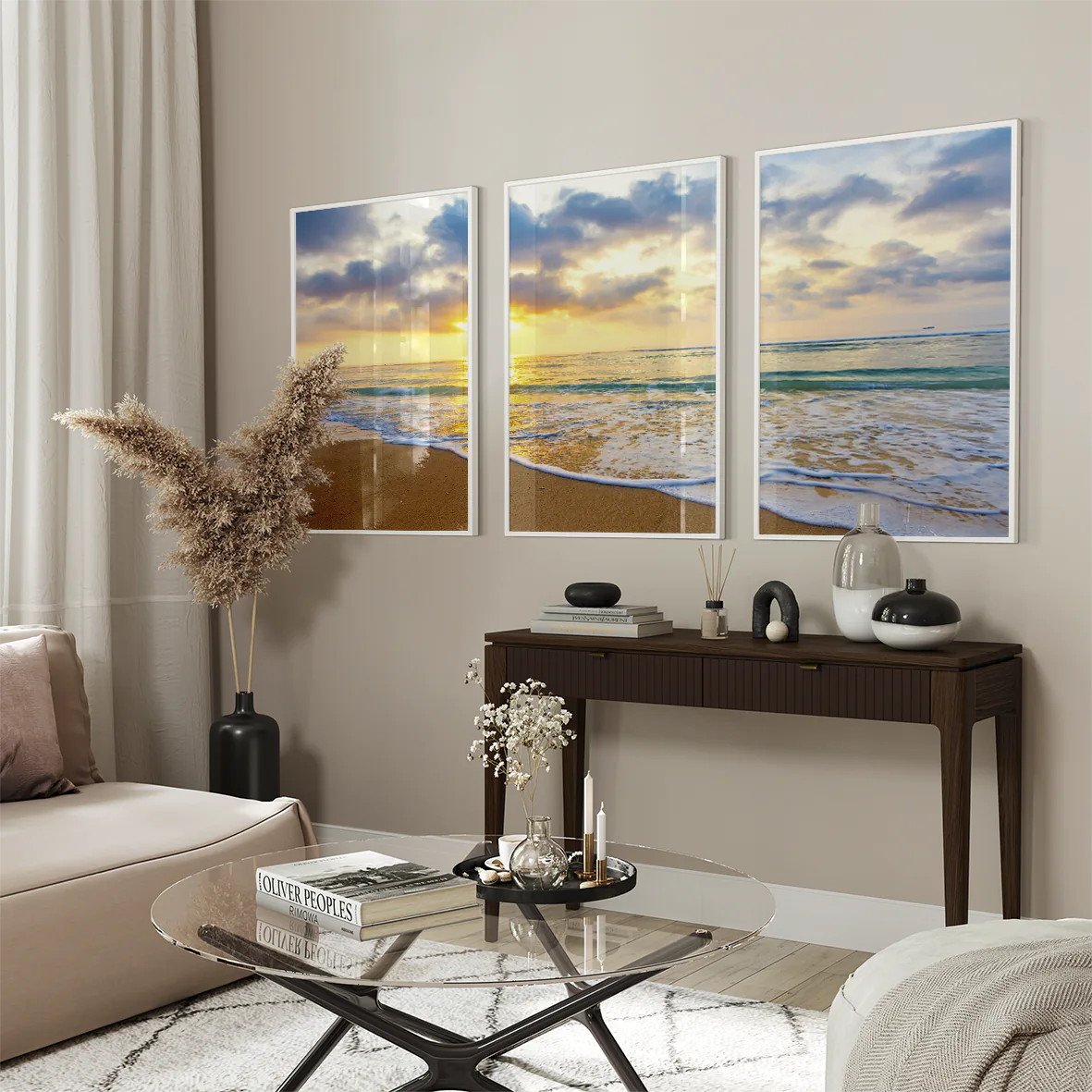 アートポスター コースタルサンセット 夕焼け海岸 北欧モダンインテリア 3枚セット