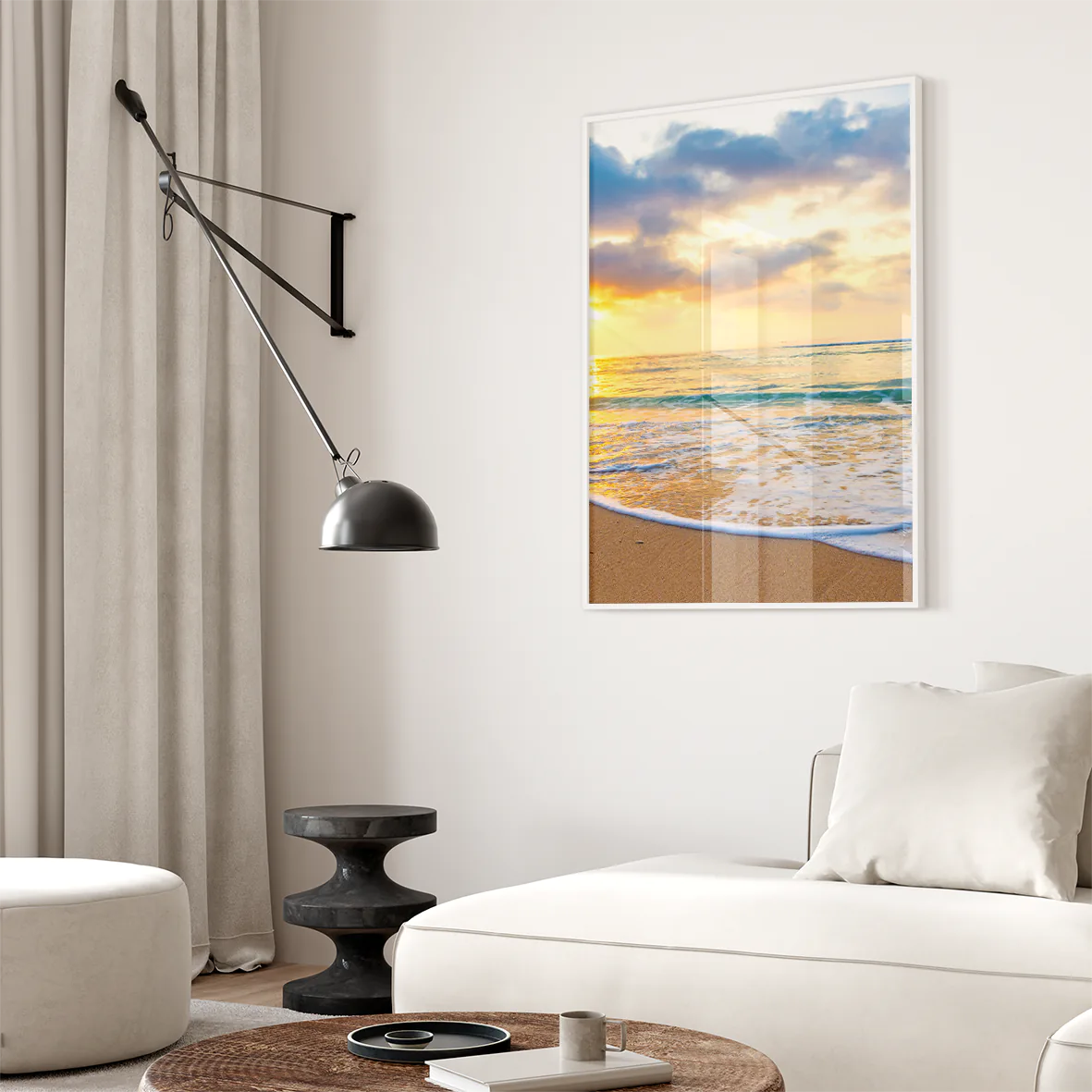 黄金色に輝く夕焼けと穏やかに寄せる波が織りなす、静寂で美しい海岸風景を描いたアートポスター。温かなオレンジとゴールドの色彩が、お部屋に安らぎと開放感をもたらします。コースタルライフの心地よさを表現したこの作品は、リビングや寝室、玄関など様々な空間で、日常に癒しのひとときを演出。西海岸風やリゾートインテリアにも調和し、自然の美しさで空間を豊かに彩る3枚セットです。